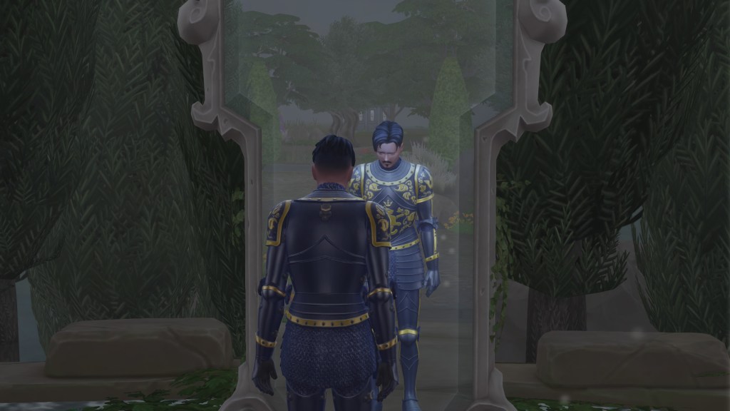 His own reflection stared back at him—armor polished, shoulders straight, the crest of his helm rising above him like a flame.